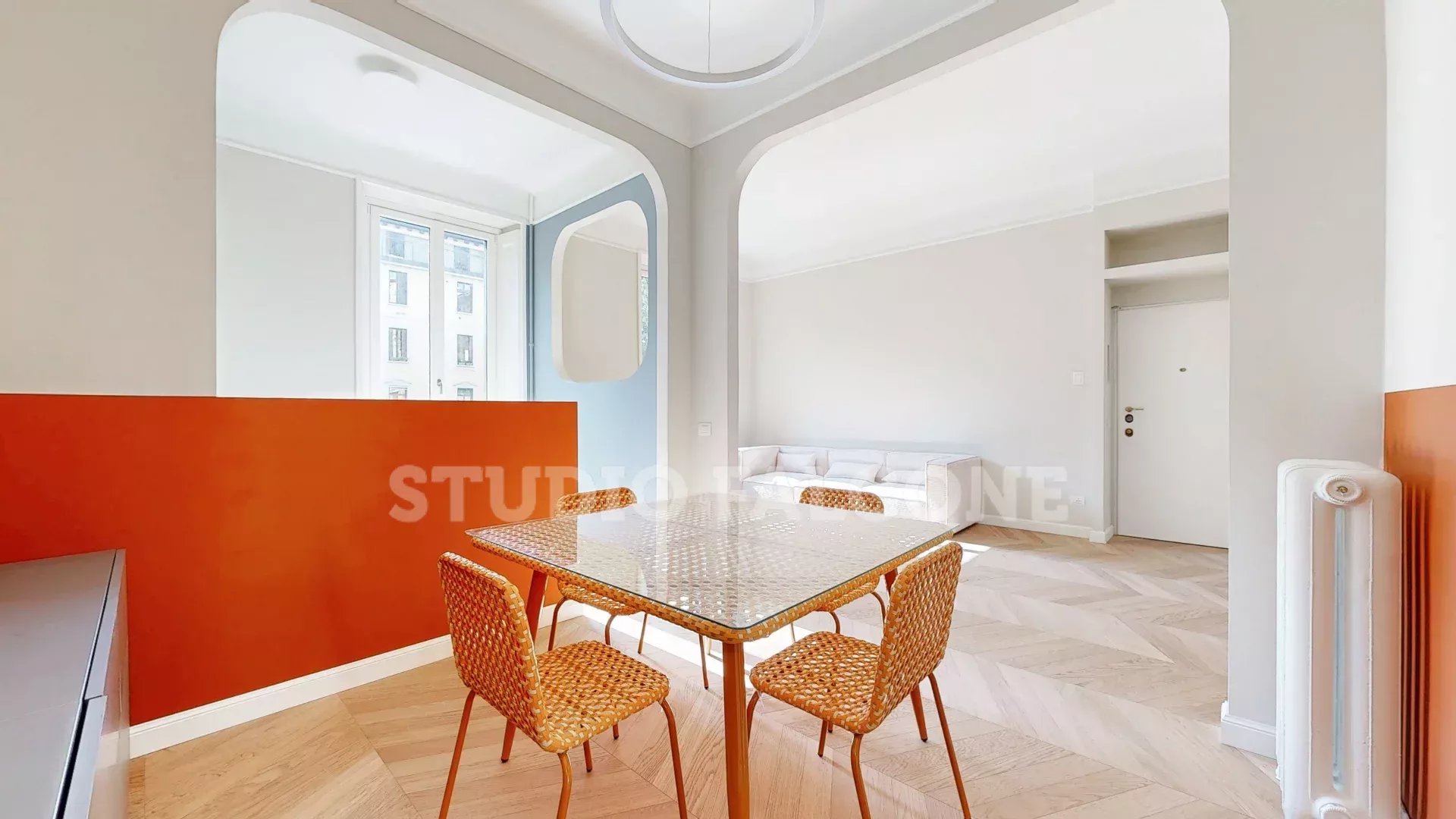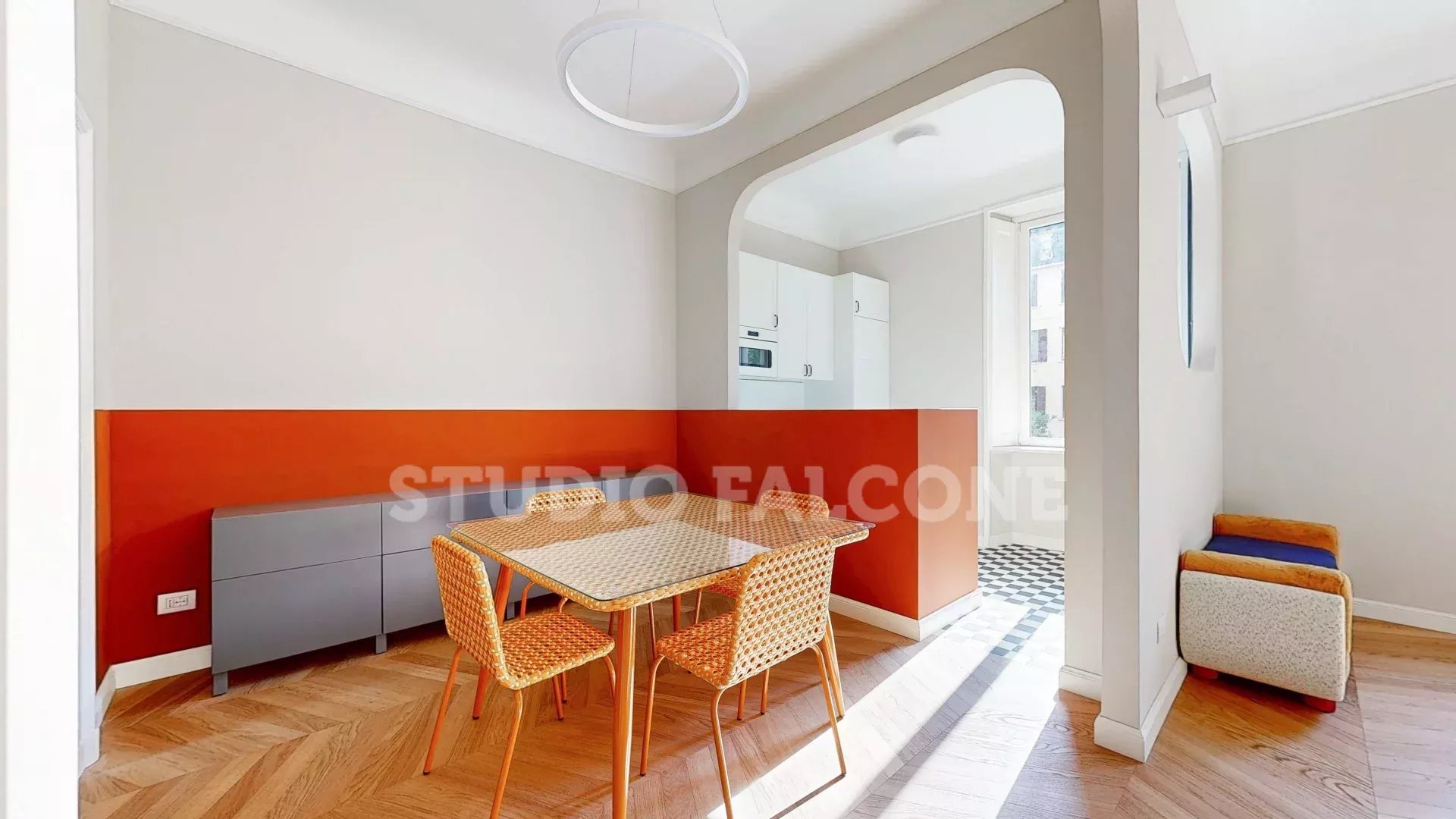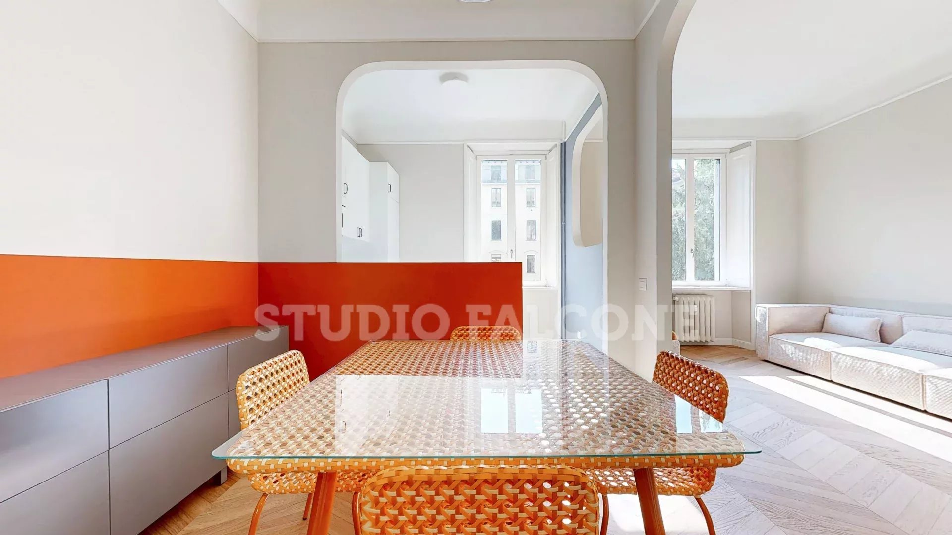 P.le Libia ad. Via Giorgio Vasari 24, inside an elegant period building, elegant apartment completely renovated with exclusive interior finishes, fully furnished. The functional division of the interior spaces consists of: large living room, dining area, semi-habitable kitchen, night hallway, three bedrooms including a master bedroom with study corner, two bathrooms, laundry room, internal balcony, balcony on the street and large cellar. Apartment with bright double exposure, custom-made closets, air conditioning system, safe, video intercom, central heating. The apartment can be leased to both individuals and companies. For more details or to view the apartment contact Dr. Massimo Falcone cell. 3355293965